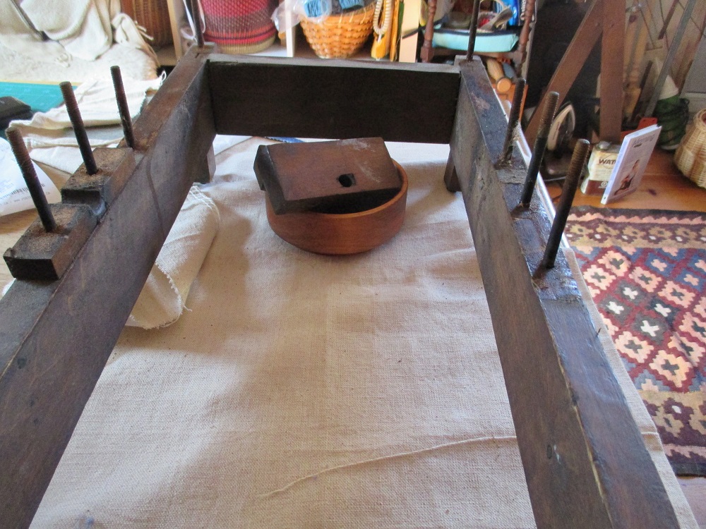 John is my better half, and kindly made me a couple of weaving aids, one from an old screwdriver and the larger one from a steel spike. They’re great and help a lot.