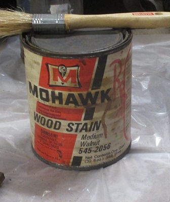 Out with the old and on with a coat of Mowhawk Medium Walnut stain