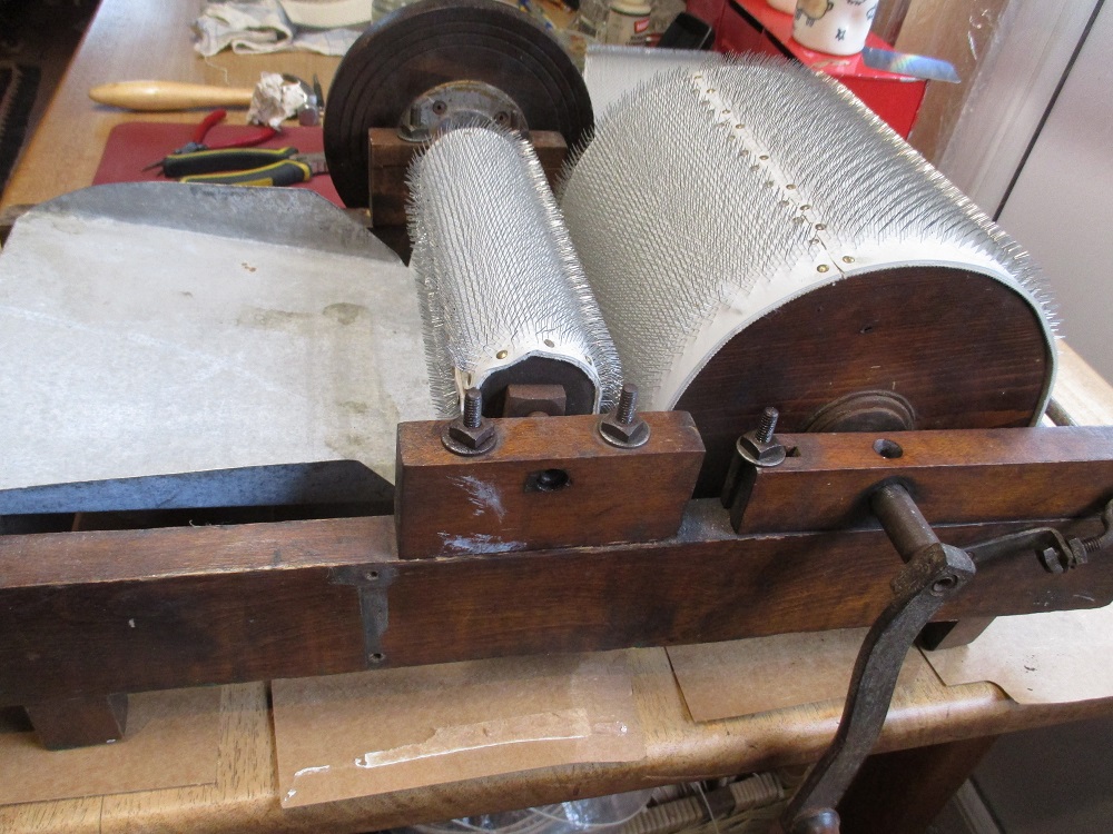 There have not been any chairs to work on recently, so I put my itchy fingers into fixing something else. For those who don’t know, a drum carder is used to card sheep, alpaca, etc. fleece in preparation for felting or spinning.